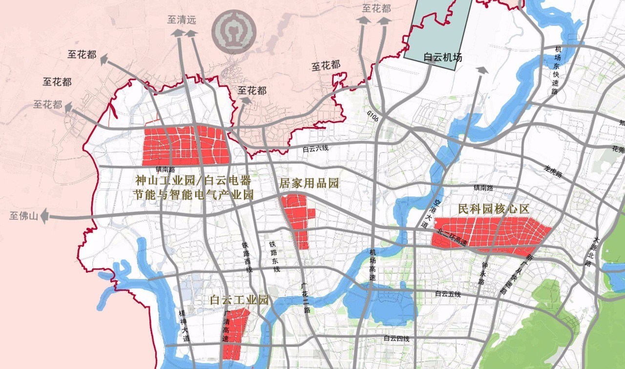 在华南快线以南19.5平方公里范围区域,将白云新城打造为白云CBD。重点发展总部经济、会议会展、众创金融、建筑设计等产业。