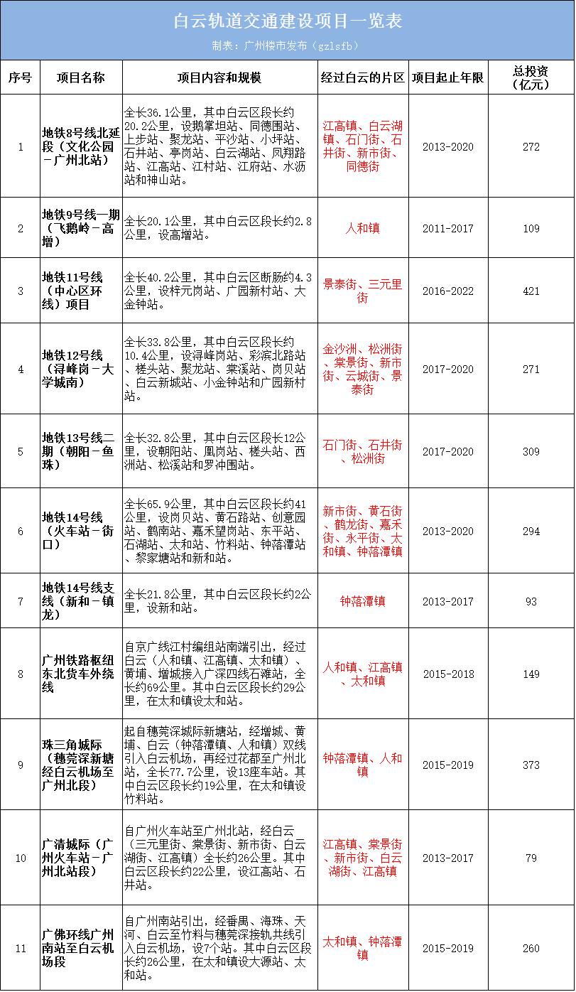 白云新城建设的项目有: