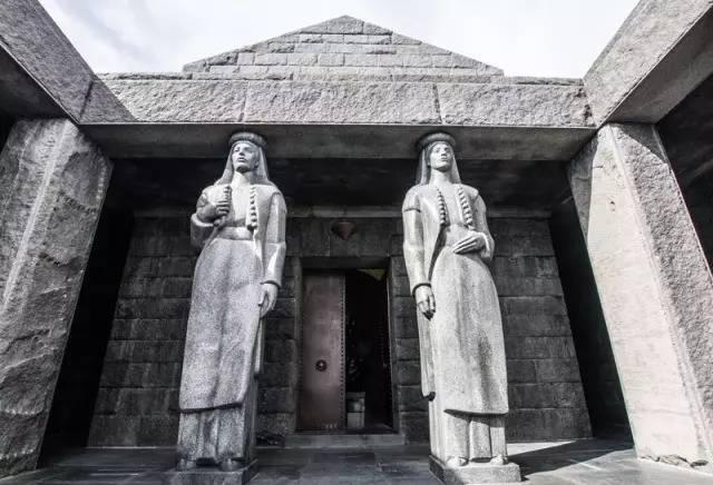 一对4米多高的花岗岩女巨人石像守卫在墓室入口,一尊由克罗地亚雕塑大师伊凡·梅斯特罗维奇创作的黑色大理石涅戈什二世雕像赫然入目,地下墓穴里的石棺则是白色大理石材质,地上地下仿佛代表着人间功业的不朽和冥界冰冷的永恒。