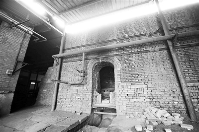 琉璃厂的门大敞着,从厂外到厂内的近200米道路边,堆满了绿色、黄色的琉璃成品和灰色的琉璃半成品,除了一条呼呼喘气的大黑狗外,空无一人。在厂内的几间生产平房内,地上堆积着土、定型工具等材料,而用于烧制琉璃的窑里,只有地上的煤油显示着这里此前工作的痕迹。“我们有50多名工人,忙的时候这里人来人往。现在停产了,只能让大伙回家休息了。”该公司经理孙宏利说。