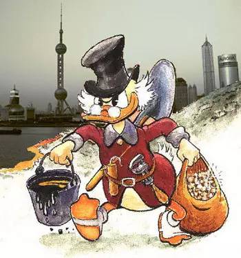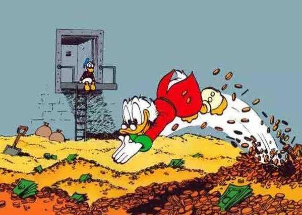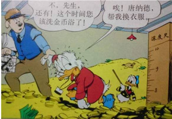 这个人就是Scrooge McDuck,史高治·麦克老鸭。唐老鸭的史高治叔叔,壕到逆天的超级大佬。