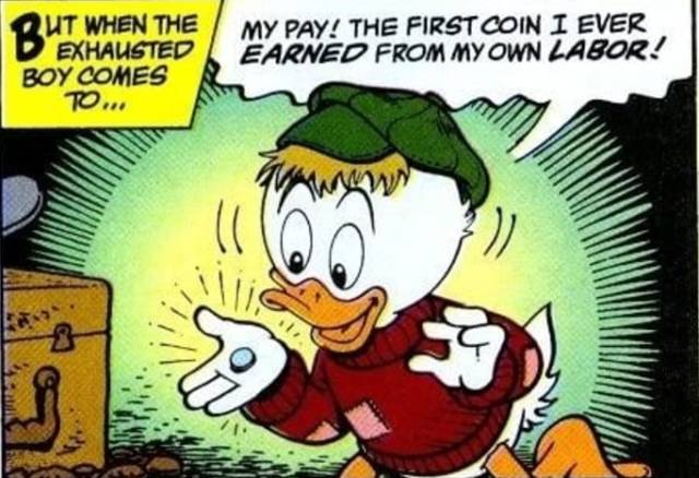 白手起家,受尽欺凌与冷眼,又吝啬小气的不花钱,才最终登上了福布斯富豪榜第一名,连Scrooge这种世界首富都要辛辛苦苦赚钱工作,我们也还是要努力好好搬砖啊!