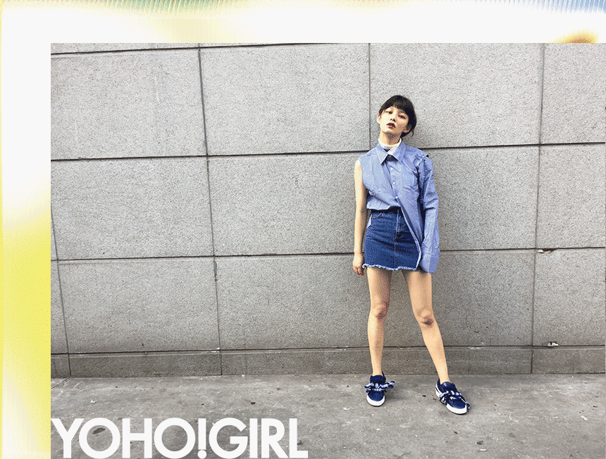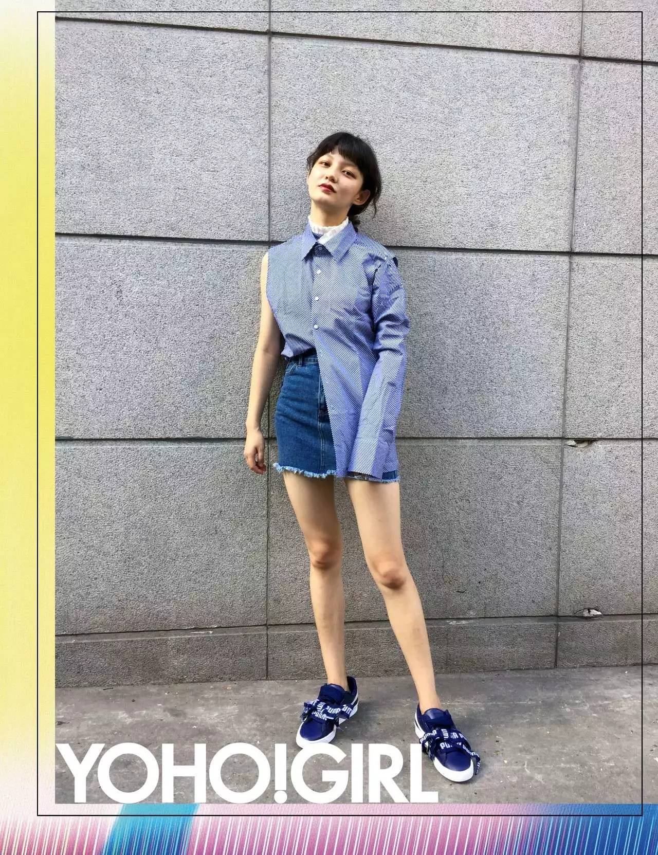X:耳环是重点!然后因为鞋子是蓝色的,所以我选择了一件蓝色的吊带。