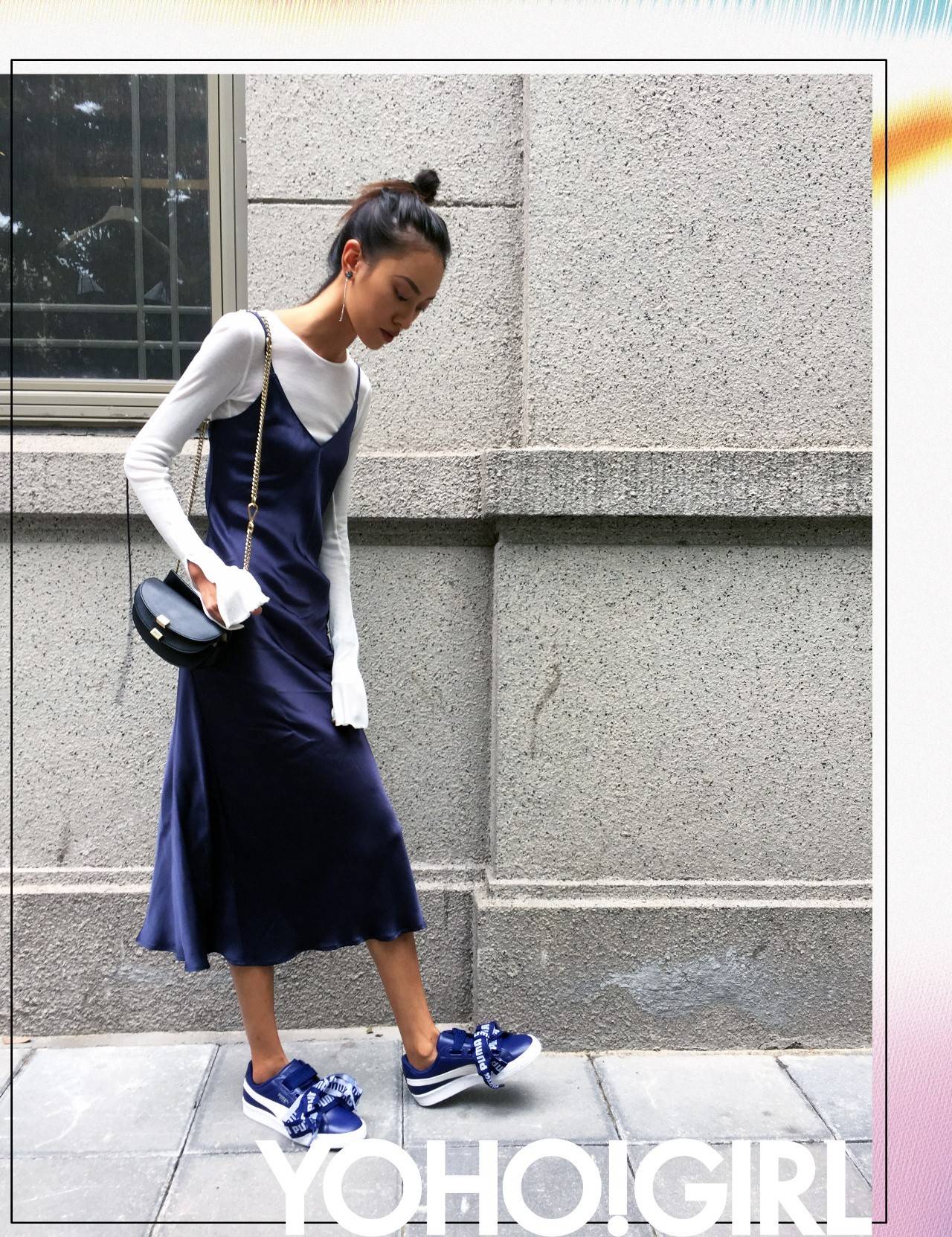 L:主要是不敢直接穿吊带裙,就在里面加了一件半高领的小背心。这样的背心容易显得肩颈好看。