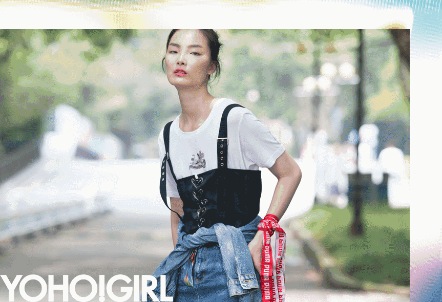 H:就是到处绑带!这次也把鞋带绑在了手上,特别的是这个PUMA的鞋带,很宽而且上面有logo,很适合做造型。