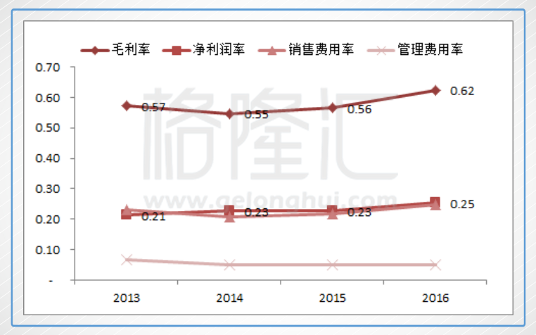 公司没有财务费用,因为长期短期借贷款都为0。2016年公司的资产负债率仅为12.45%。所以从负债情况看,公司经营上是相当保守的。