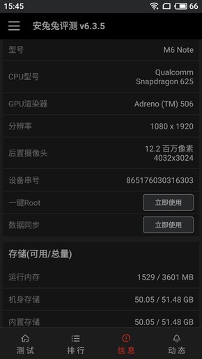 内存方面,魅蓝Note6最高搭载4GB RAM+64GB ROM的组合,我手上这台便是最高配置。正所谓“不服跑个分”,骁龙625的表现大家都门儿清,还是先用安兔兔来探个底吧。如下图,魅蓝Note6的跑分可以稳定在6万+的水准,这个表现和价格还是比较匹配的。而实际体验来说,魅蓝Note6运行时下火热的《王者荣耀》或者《阴阳师》都不成问题,而且,其发热表现十分出色。
