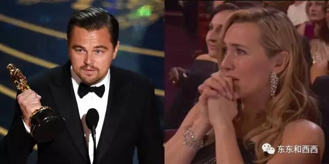 去年奥斯卡,小李结束万年陪跑,当他在台上淡定地发表获奖感言时,凯特在台下眼泛泪光,简直比小李还激动↓↓