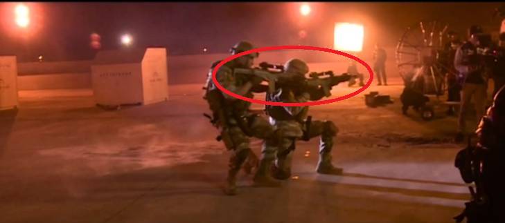 或许是出于电影故事设定中,有我军部队出境作战的考虑,在道具选择上,《空天猎》剧组疑似选择了曾在珠海航展上展出过的外贸枪械作为道具枪支使用。