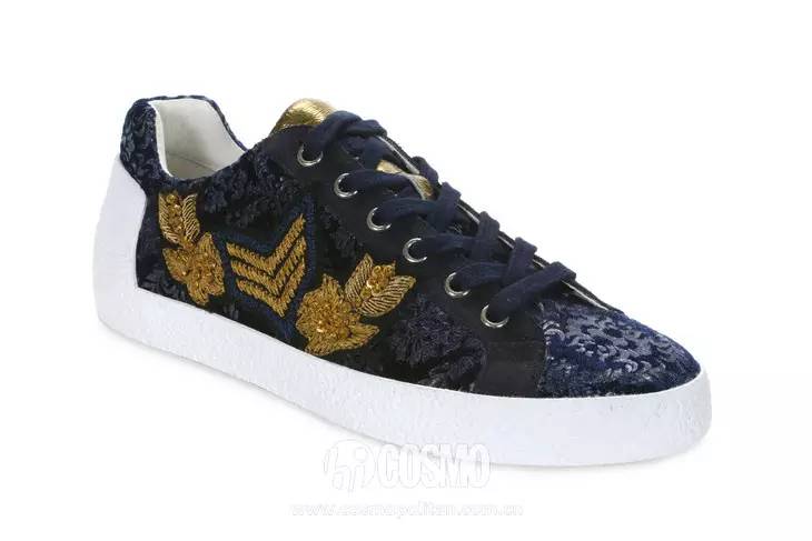 Ash并没有把丝绒运用在品牌经典鞋型上,而是选择了更为实用的板鞋球型呈现,再配上勋章的点缀,十足有范儿。而且细看,人家的丝绒可是有点小心思的哦,上面勾勒出了充满宫廷质感的蔓草纹图形呢!