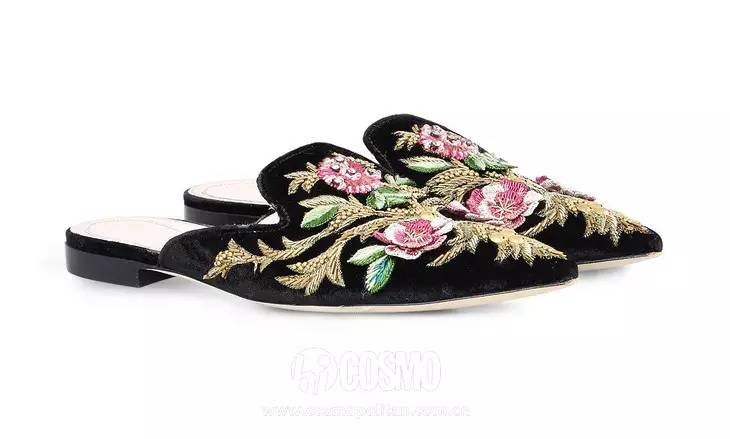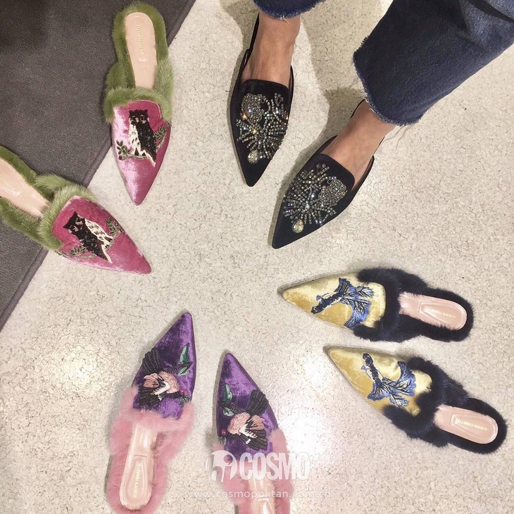 而且市面上可供选择的尖头丝绒鞋简直不要太多,卖得最好的应该是Alberta Ferretti吧?品牌以刺绣尖头拖鞋突出重围,让古典主义和现代优雅完美交融在了一双拖鞋上……今年秋冬主打丝绒款,颜色眼花缭乱到让人不知道挑哪双啊,而且为啥可以把彩色做得那么有质感?