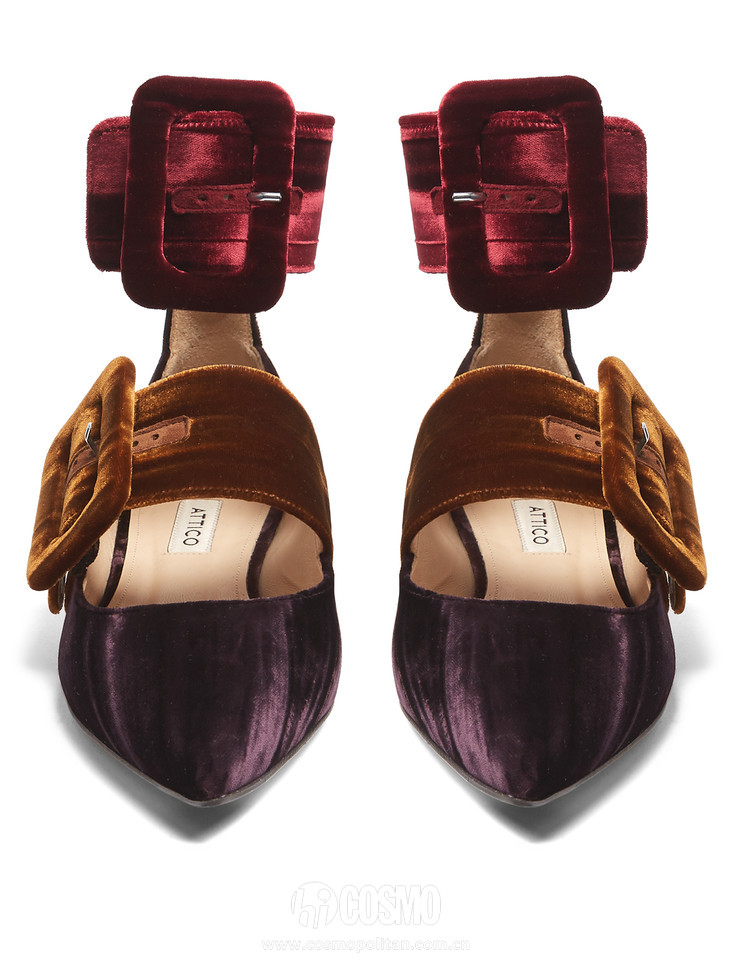 若要COCO在众多丝绒鞋中只能选一双,COCO基本上会毫不迟疑的推荐尖头鞋。毕竟尖头鞋又显腿型又有女人味啊!再加上一层高级感爆棚的丝绒覆盖,能抵抗这种诱惑力的可能不是女孩纸吧?