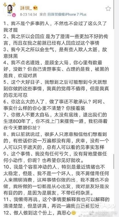 ◇iven奕呢颖:主要是贝贝想撕逼的,怪的了别人?不能发图片,如果能就把她说的话发出来了,她的意思是 黄灿灿分手半年了 还不说出来 卖人设!人家说不说和你有什么关系 你做为她的朋友就做好朋友的本分,嘴那么贱干嘛?