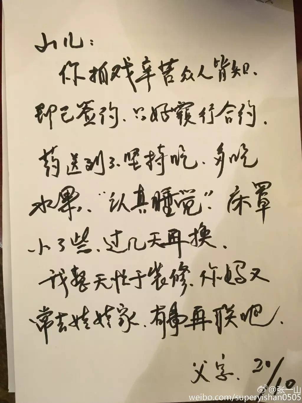 许久不见儿子的张爸爸写下关心的话语。