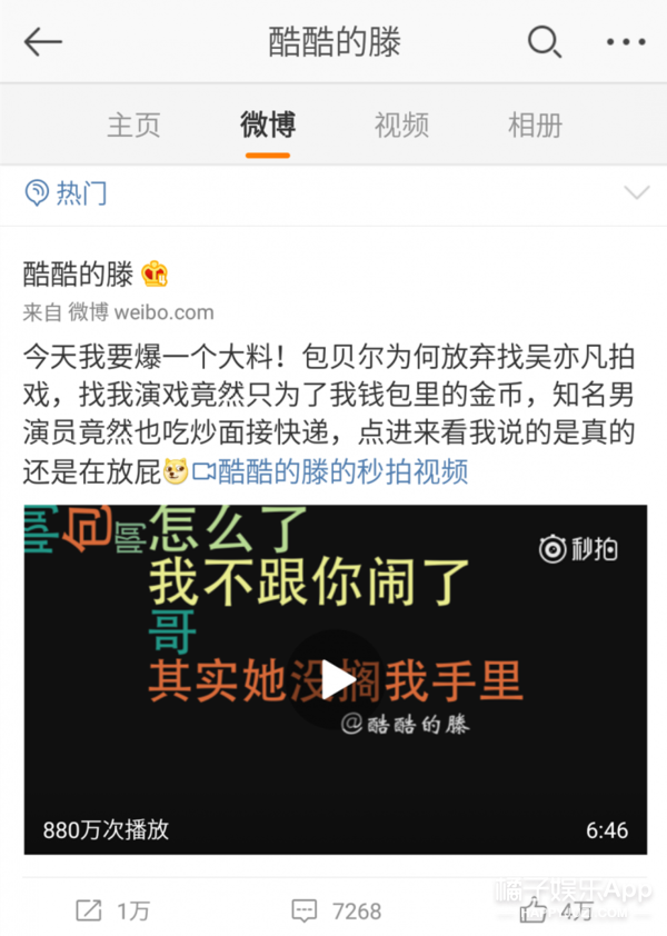 最后酷滕终于说实话了,介绍自己是@酷酷的滕,说是包贝尔的经纪人给他的电话号。