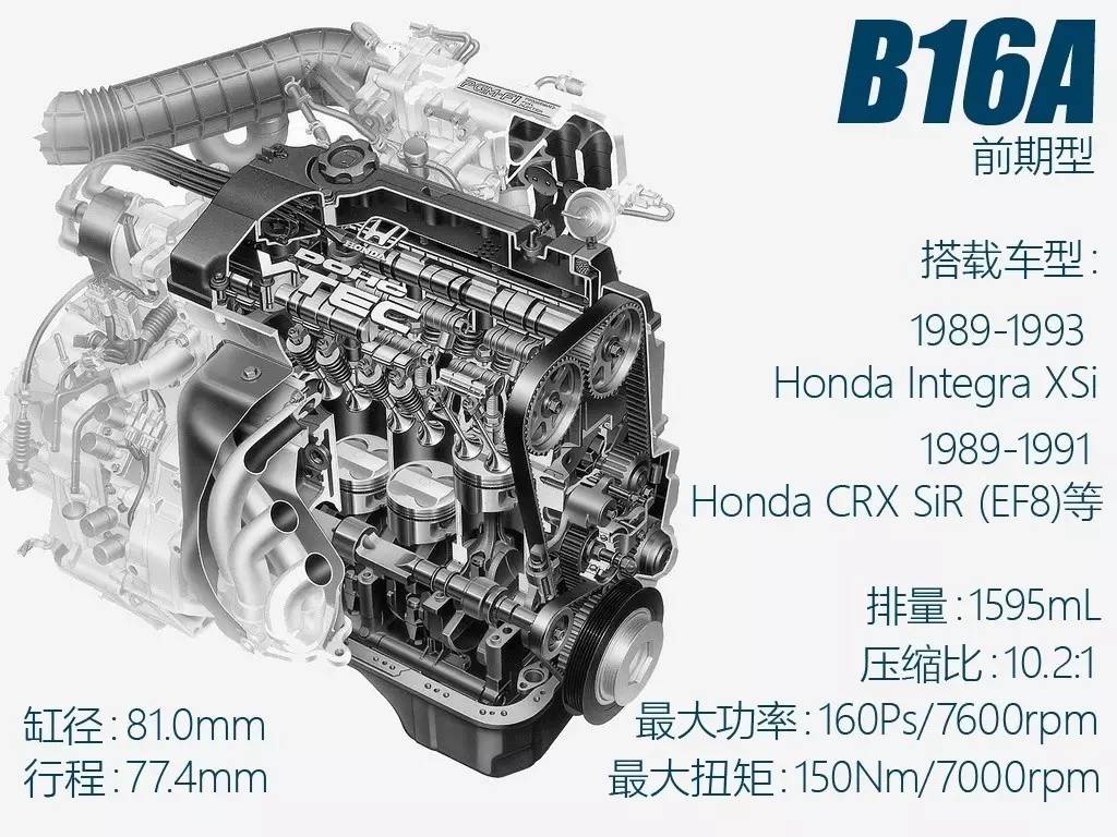 当然,VTEC技术肯定要有发动机作为载体,代号为B16A的1.6L自然吸气发动机也就成了VTEC的"处女秀",而Integra RSI(DA6)和Integra XSI(DA6/DA8)这两款本田新车则因为VTEC发动机的搭载而被历史铭记。此后的B16A还推出了改进型B16B,和一般的发动机越到高转动力衰退越明显不同,VTEC发动机的魅力就在于高转速区间的动力释放,并且在爆高转时的发动机亢奋声浪极易让耳朵“高潮”(所以有些人会觉得VTEC发动机太吵)。对于追求动力感受的人来说,在涡轮增压发动机尚未大规模普及之时,本田VTEC发动机简直就是"神一般的存在"。