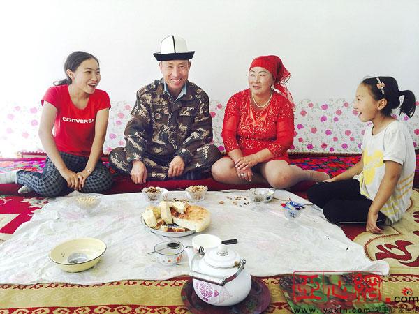阿孜古丽家住克孜勒苏柯尔克孜自治州阿合奇县色帕巴依乡,2010年政府支持他们盖安居富民房,阿孜古丽一家住上了80平方米的新房子。如今她有着17亩地的农作物,还养有150多只羊。经济条件好,三个孩子在学校表现不错,日子也是越过越舒心。