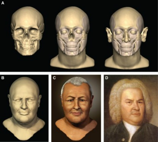 2008年是巴赫诞辰323周年,苏格兰邓迪大学解剖与人类鉴定中心以博物馆提供的铜制巴赫头骨模型为基础,也对这位德国音乐大师进行容貌还原。相隔100多年,两次复原的塑像哪个更像巴赫本人呢?有关巴赫的画像只有一幅得以流传,与之对比,2008年3D复原后的巴赫像拥有大眼睛,宽面庞,一头茂密的银发,与流传下来的那幅肖像画惊人的相似,或许更加接近巴赫本人的相貌。