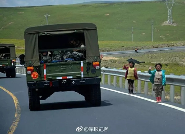 藏族小朋友路遇77集团军军车立即站直敬礼,解放军鸣笛回礼