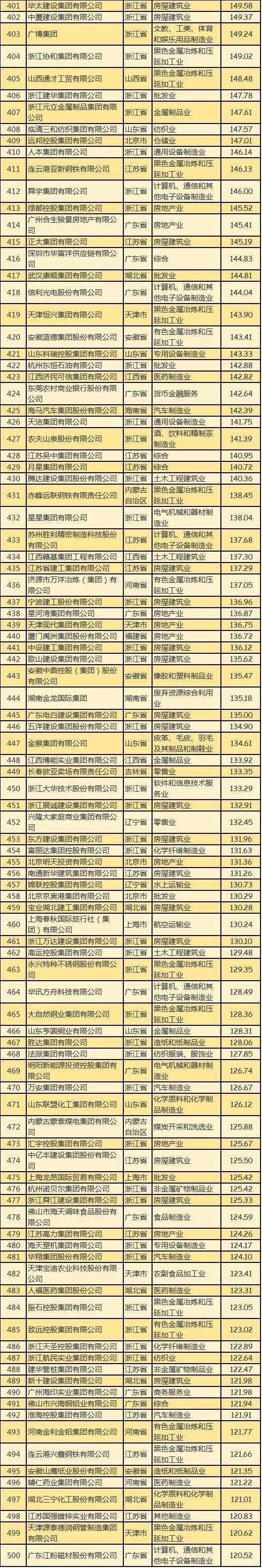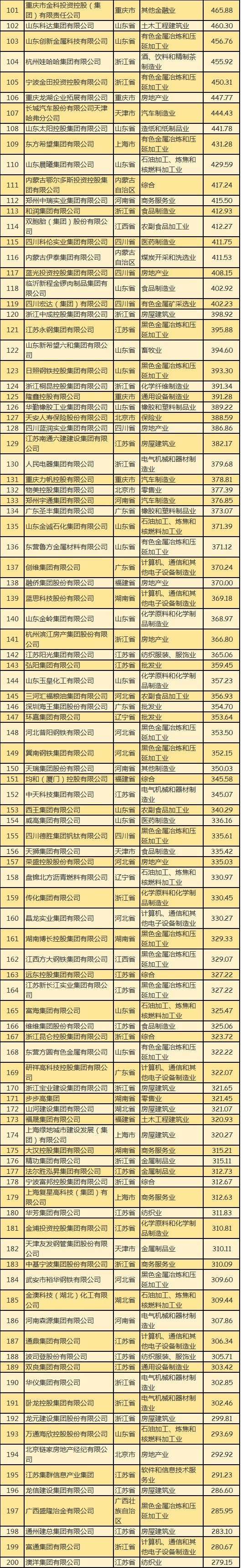 黑龙江:中发实业(集团)有限公司(221.2亿元),它在民企500强榜单中排第255位;