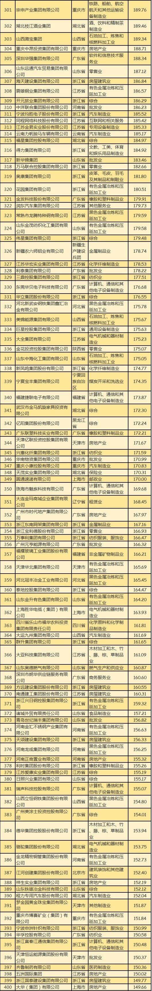 山西:山西潞宝集团(189.34亿元),它在民企500强榜单中排第303位。
