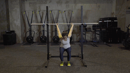 ▲身体背对与肩齐高的固定物,双手内旋抓住固定物,身体慢慢下沉,做到极限后深呼吸,吸气时保持位置不动,呼气时加深拉伸幅度。