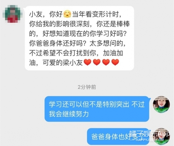 还会回复一些关心自己的人的私信,“学习还可以但不是很突出,我会继续努力。”