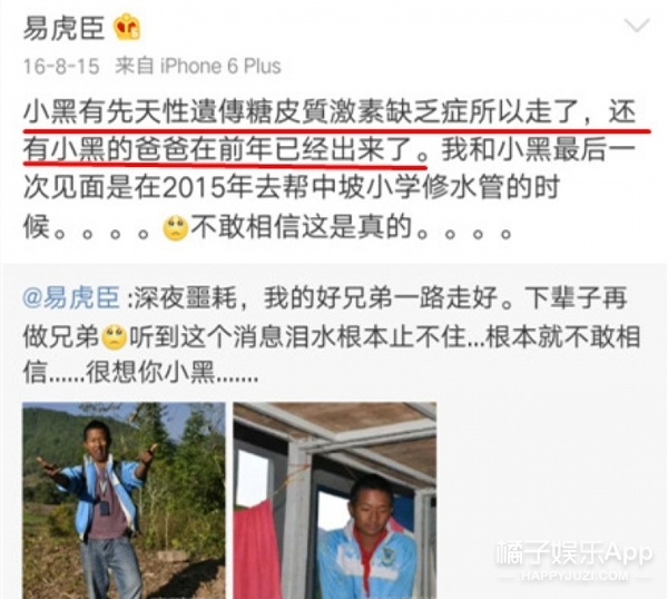 可是,谁知道,2016年8月15日,同期城市主人公易虎臣发微博告知大家,小黑已经走了的消息...