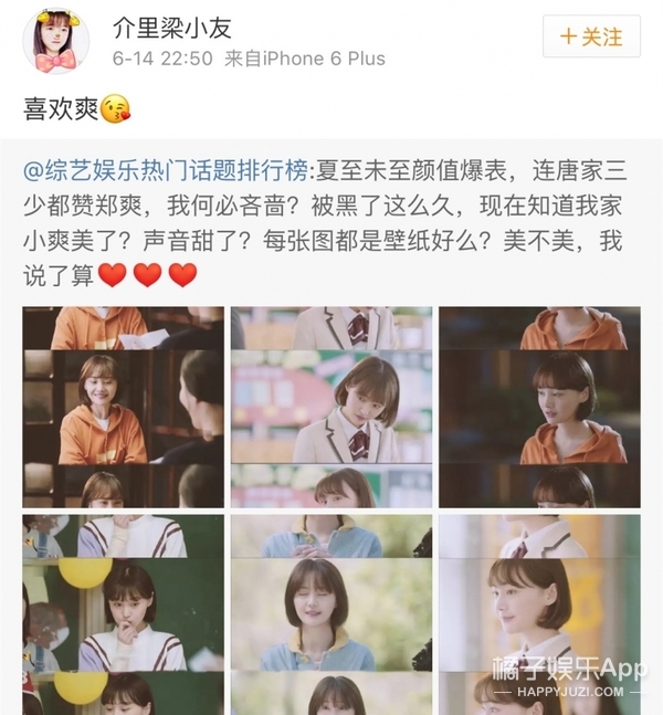 从发的微博来看,小友挺喜欢郑爽的,还是个小迷妹。