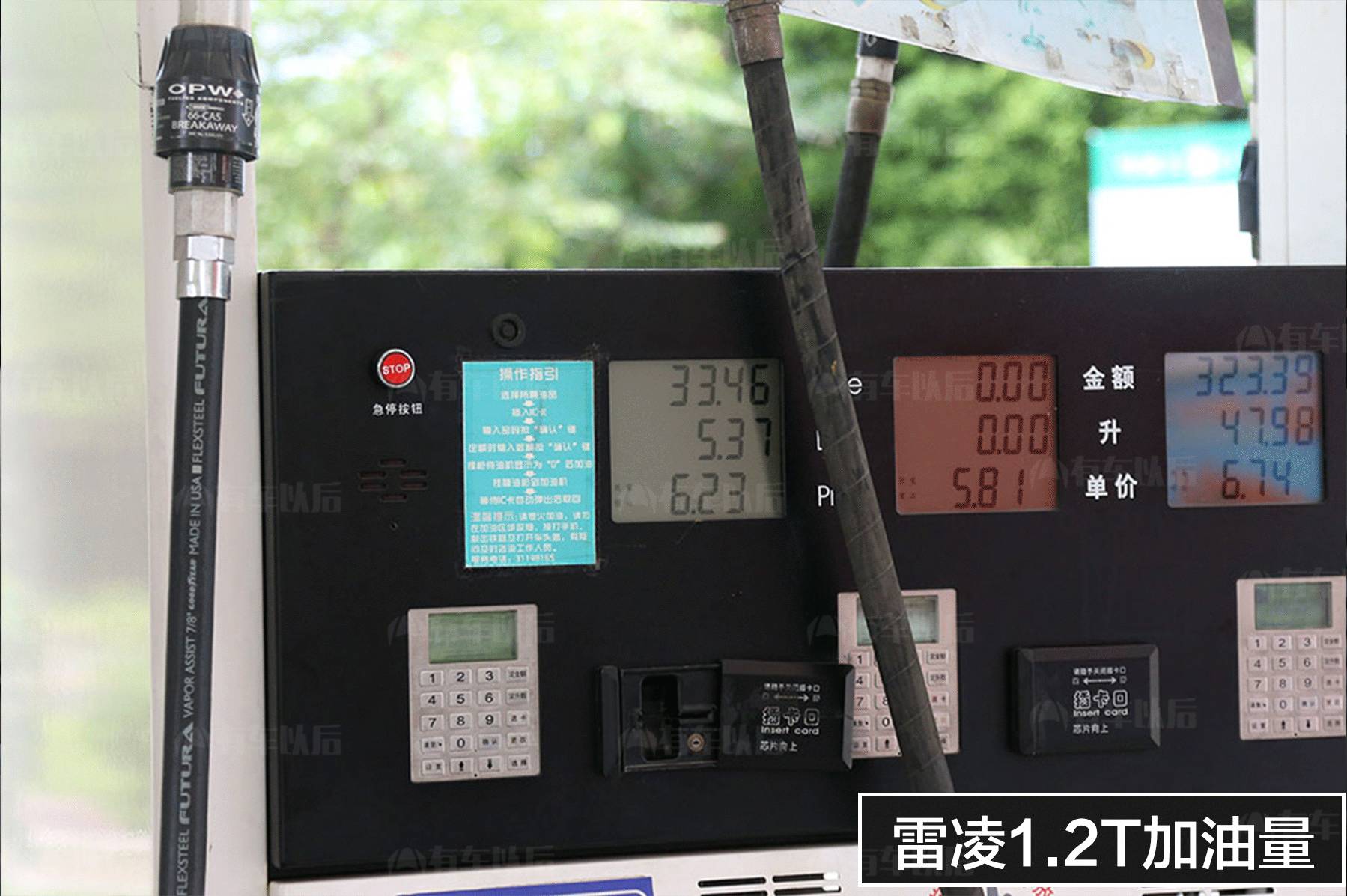 测试方法:两车在同一油站、同一油枪加满油至跳枪。