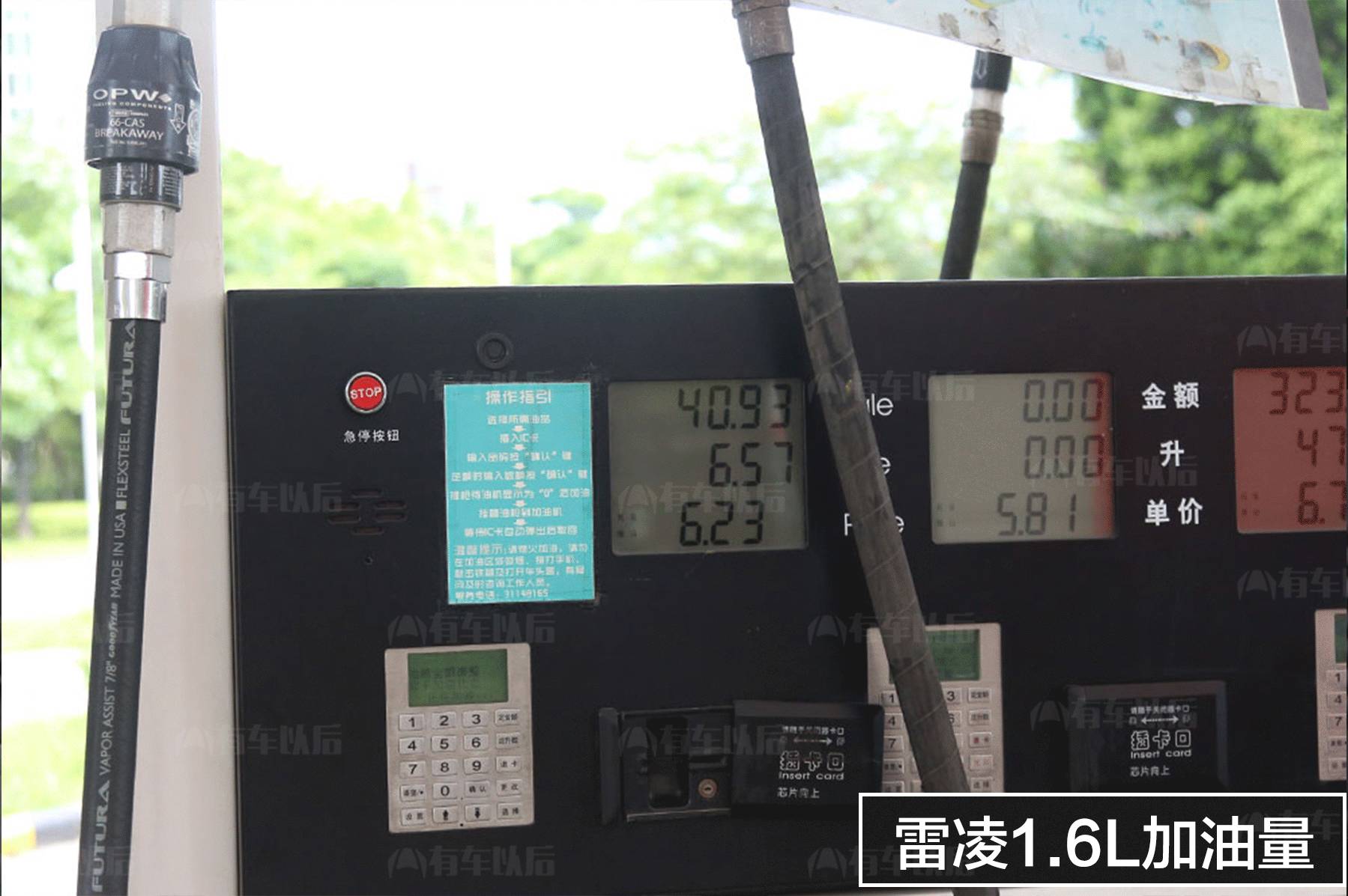 最终再回到起始时的加油站,同一油枪加满油,看其最终的加油量。