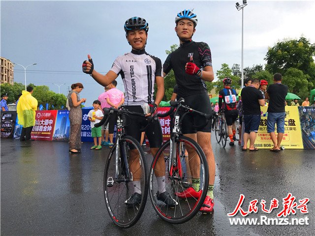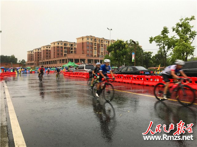 风雨交加,但参赛选手与观众均热情不减,数万名观众沿途不停为选手加油助威。赛事志愿者们手持矿泉水伸长胳膊站在补给站点,以便选手在骑行中能够顺利取水。