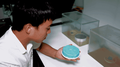 车民哥搞来了可以制造烟雾的烟雾弹,并且用地胶把缝隙封严,避免鱼缸里面的烟雾跑出来。