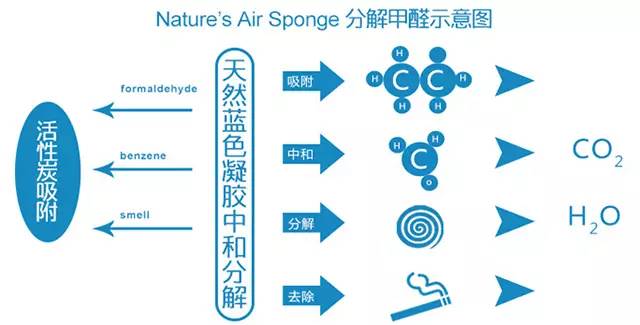 Nature's Air Sponge 几乎可以消除家中、办公室、汽车内所有的气味和污染物质,包括残留在衣服、窗帘、床、家具、冰箱等室内装潢的气味和装修甲醛。