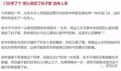 这个故事让子琳印象非常深刻,她决定就从这个病人的故事开始写起,给大家分析腹主动脉瘤是一种什么样的病,是不是一旦肚子里面有感觉心跳,就是腹主动脉瘤。