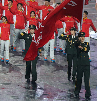第十三届全运会开幕 我军代表团旗手仲为君一袭军装英武