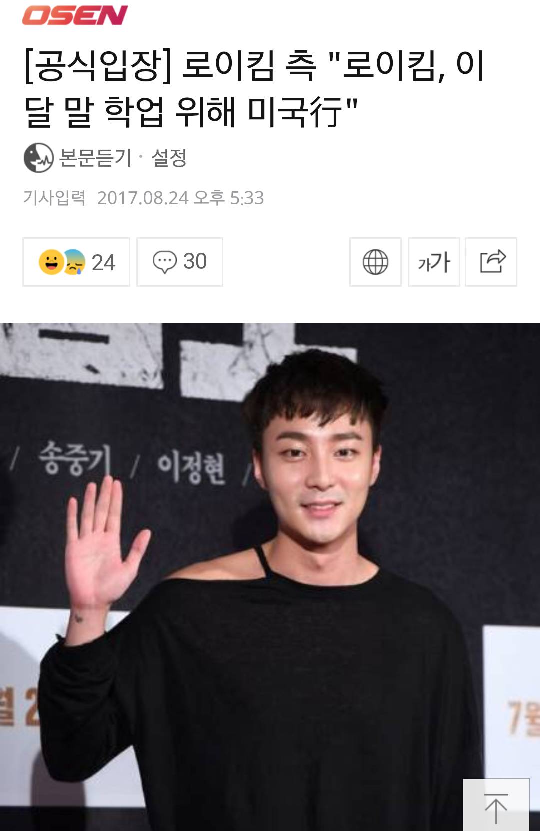 24日,Roy Kim所属社公开表示“Roy Kim将于这个月月末前往美国继续学业,将暂别粉丝”,消息一经公开令粉丝感到十分可惜。