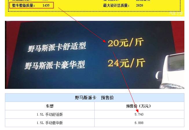 别人家的车都是论辆卖的,野马的斯派卡是论斤卖的。幸好我大太平洋汽车网编辑部人才济济,马上根据一辆斯派卡有多少斤,算出了整辆车的售价。