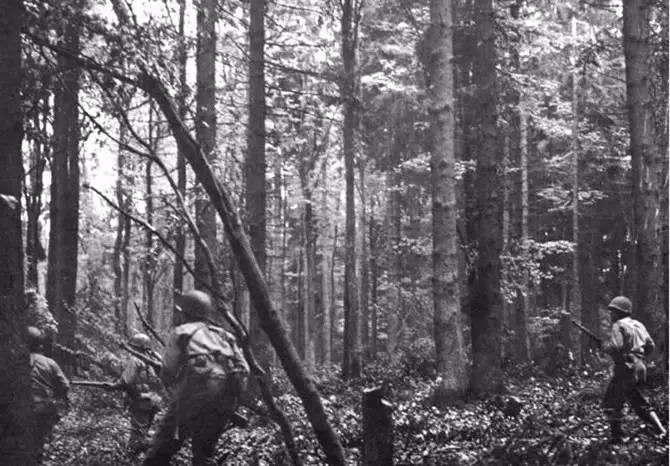 美军对于许特根森林的进攻并不顺利,德军在这一地区构筑了坚固且完备的防御工事,在道路上埋设了大量的地雷。而且茂密的树林,也很大程度上限制了盟国空中力量的施展,包含第一步兵师在内,美军第一集团军在此鏖战,遍地散落着丢弃的枪支和损坏的装备。尸体发出的臭气更令人无法忍受,拥有兵力和火力双重优势的美军在战役中举步维艰。