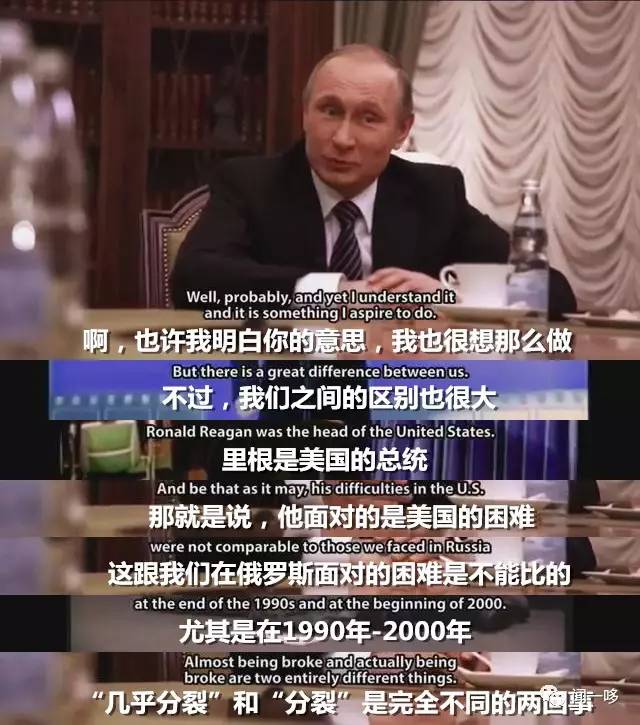 斯通和普京稍后继续了这个话题,斯通直截了当:一些人认为,美国当前对俄罗斯的战略是,摧毁俄罗斯经济,更换领导人……