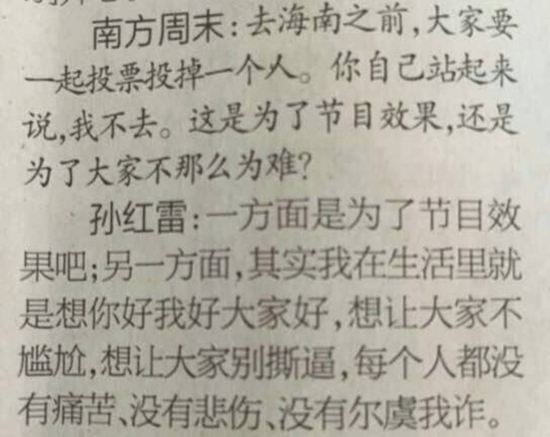 在3000步去海南那期节目中,导演组让选出“最不想一起旅行的人”,孙红雷抢先呛声说,“我都不想和他们一起去旅行!”