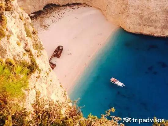 如果要把一座海滩用“爱情定义”,那么非希腊的沉船湾(Navagio Bay)莫属。虽然是希腊的象征海滩之一,但因为是扎金索斯群岛(Zakynthos Island)的一个孤立的小湾,只能依靠乘船才能到达。所以一直颇为神秘,直到一部《太阳的后裔》,叫它名声大噪。