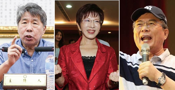 蔡正元(右)和张亚中(左)是前国民党主席洪秀柱(中)的两大爱将及核心干部。(图片来源:台湾《联合报》)