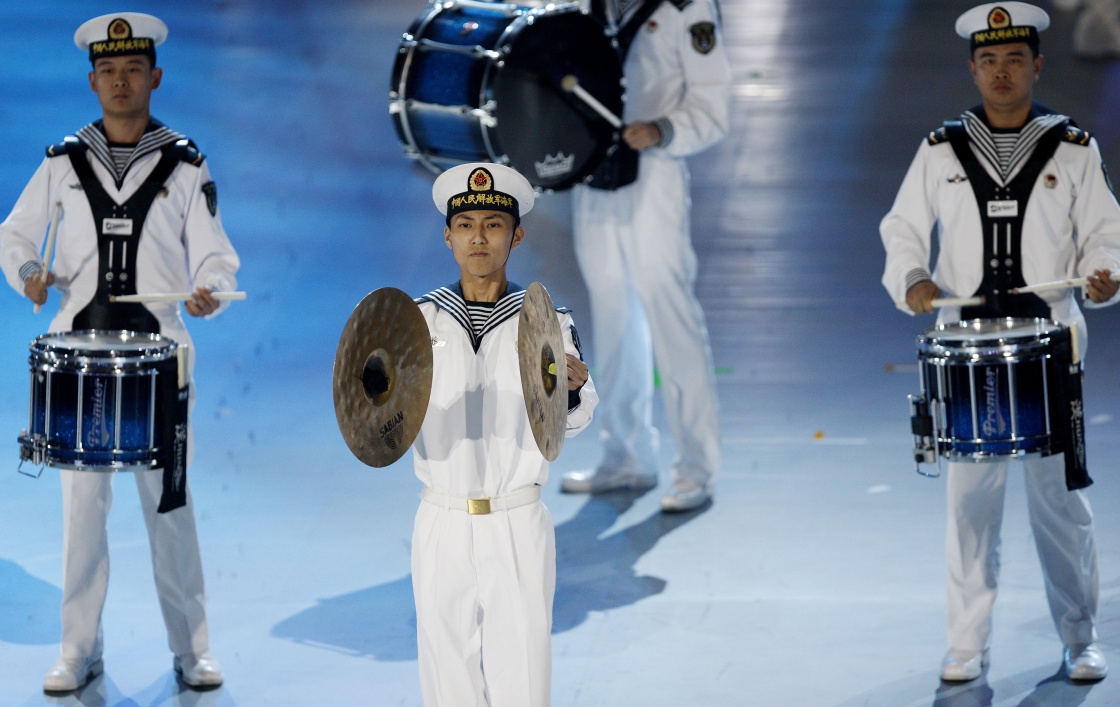8月26日,中国人民解放军海军军乐团在军乐节开幕式上表演。新华社记者 方喆 摄