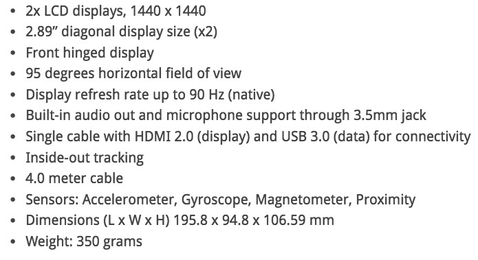 除了物理形态,惠普 VR 头显的配置和宏碁一样。$329 美元(不含控制器)。