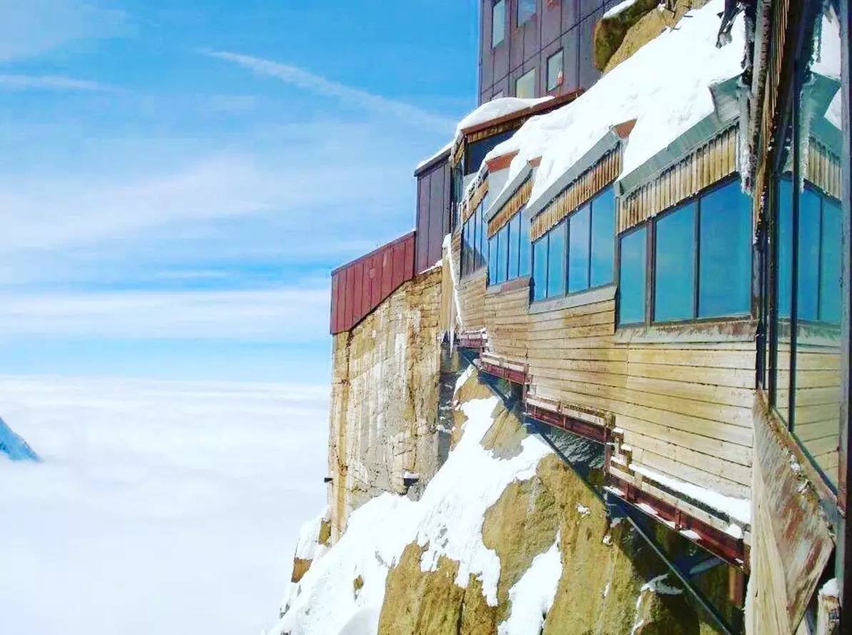 在寒冷的峰顶品尝精致法餐,一抬头便是无与伦比的阿尔卑斯山雪景,餐厅还有4个观景台,勃朗峰的壮丽奇景尽收眼底,大自然的鬼斧神工和舌尖的美妙体验在这一刻完美交融。