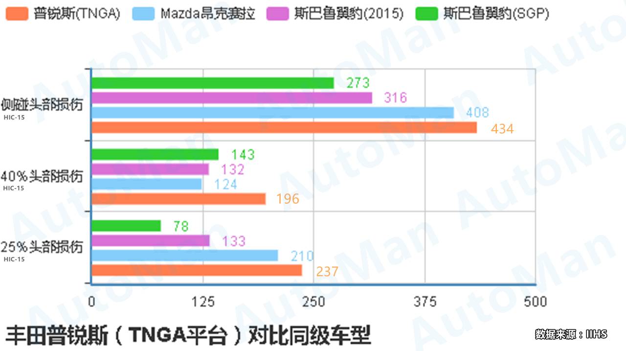 作为被动安全性能大幅提升的TNGA平台,丰田普锐斯在25%偏置碰撞、40%偏置碰撞和侧碰中,甚至无法与和老一代斯巴鲁翼豹比较,更别说是新一代采用SGP平台的翼豹。