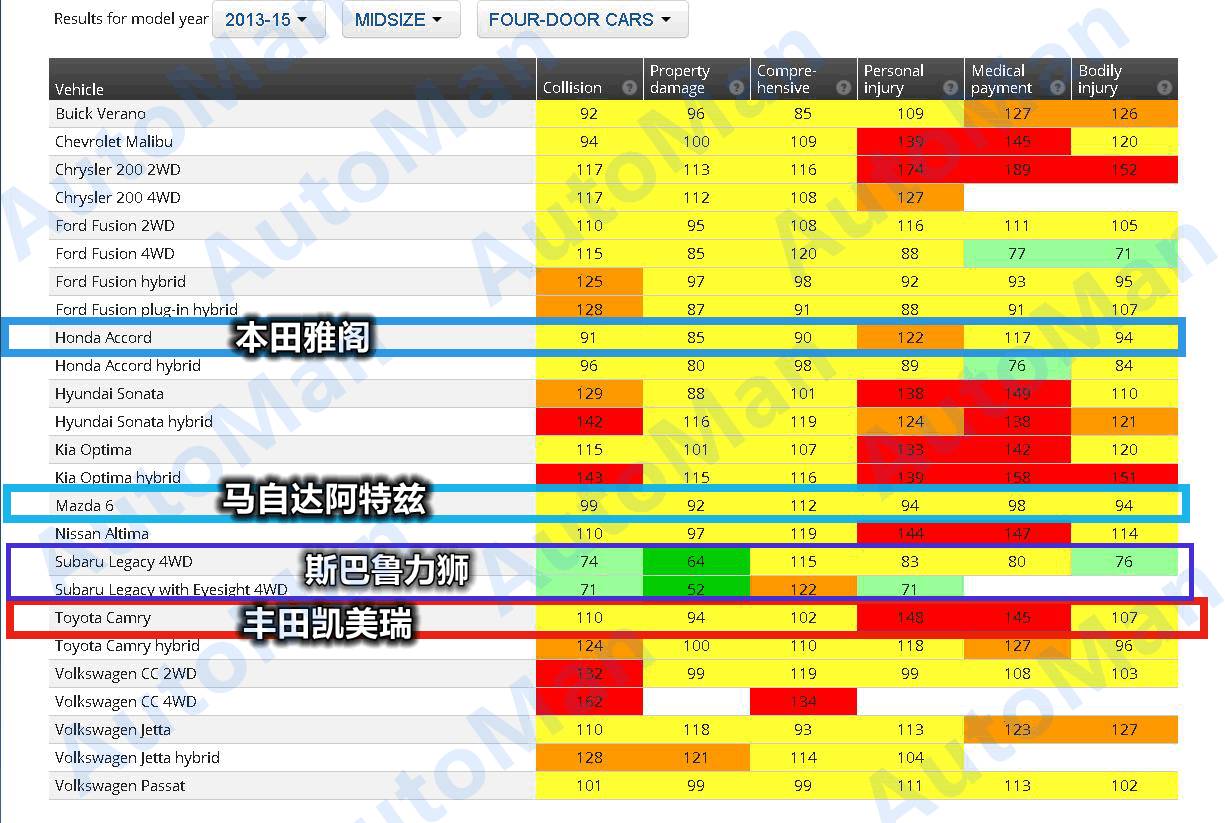 IIHS作为保险机构的代表,还统计了车上人员保险赔付数值,并且,这已经是2015款的数据。