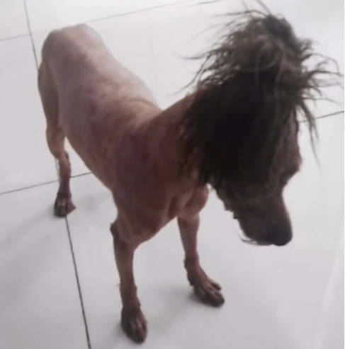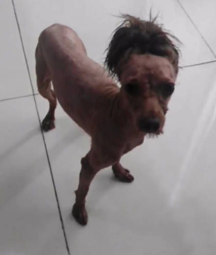 还有一只泰迪更倒霉,因为毛发打结严重,只能把全身的毛都剃掉,于是……就变成了这样↓