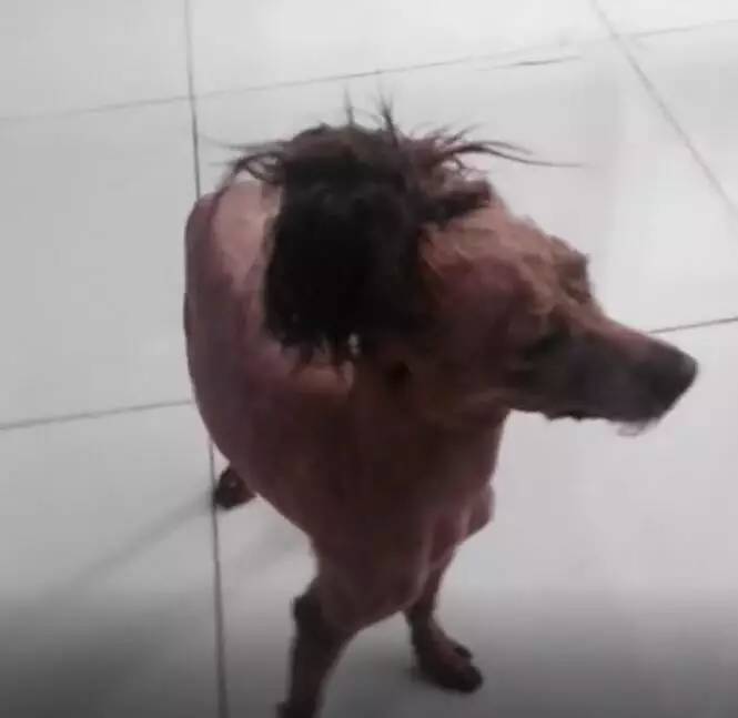 宠物店老板看了也很为难,因为狗狗的毛发打结太严重,最后只能……整个剃下来了……